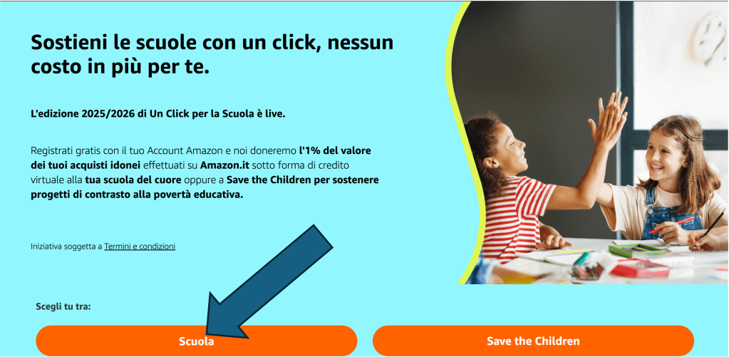 Anche quest’anno il nostro Istituto partecipa all’iniziativa “Un Click per la Scuola“: fino al 31 dicembre 2025 Amazon devolverà automaticamente alle scuole una percentuale degli acquisti effettuati dai clienti che hanno aderito all’iniziativa.
