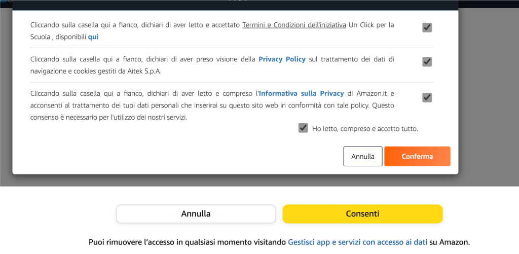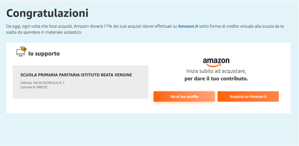 Hai associato il tuo account Amazon con la scuola!