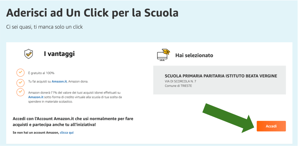 Prima di effettuare acquisti, verificate che il vostro account Amazon sia collegato alla scuola.
