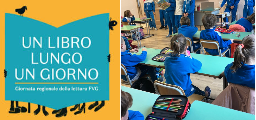 Ogni anno, l’ultimo venerdì di ottobre, LeggiAMO 0-18 FVG organizza la Giornata regionale della Lettura “Un Libro Lungo Un Giorno”, una vera e propria maratona di lettura in tutta la regione. Non poteva mancare anche il nostro istituto: nella foto, i ragazzi di quinta leggono un racconto a quelli di prima (che dopo realizzeranno un disegno per illustrare la storia che hanno ascoltato).