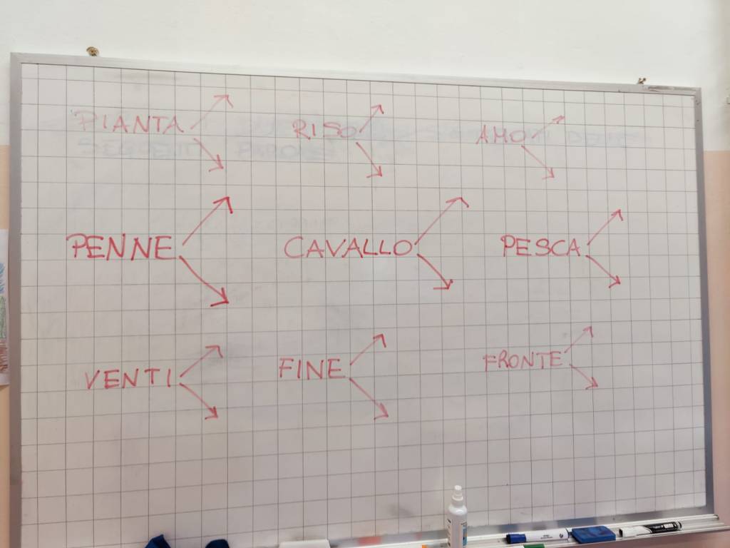 “Oggi abbiamo affrontato gli omonimi, i sinonimi e i contrari. Per sinonimi e contrari c’è una scheda che verrà portata in portineria. Oltre a quello che inserisco nel registro elettronico, bisogna scrivere i due diversi significati delle parole indicate nella foto. (si invita a controllare il registro)”
