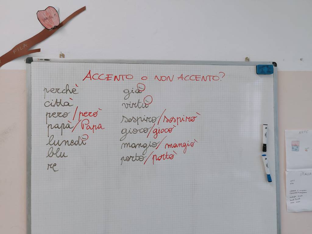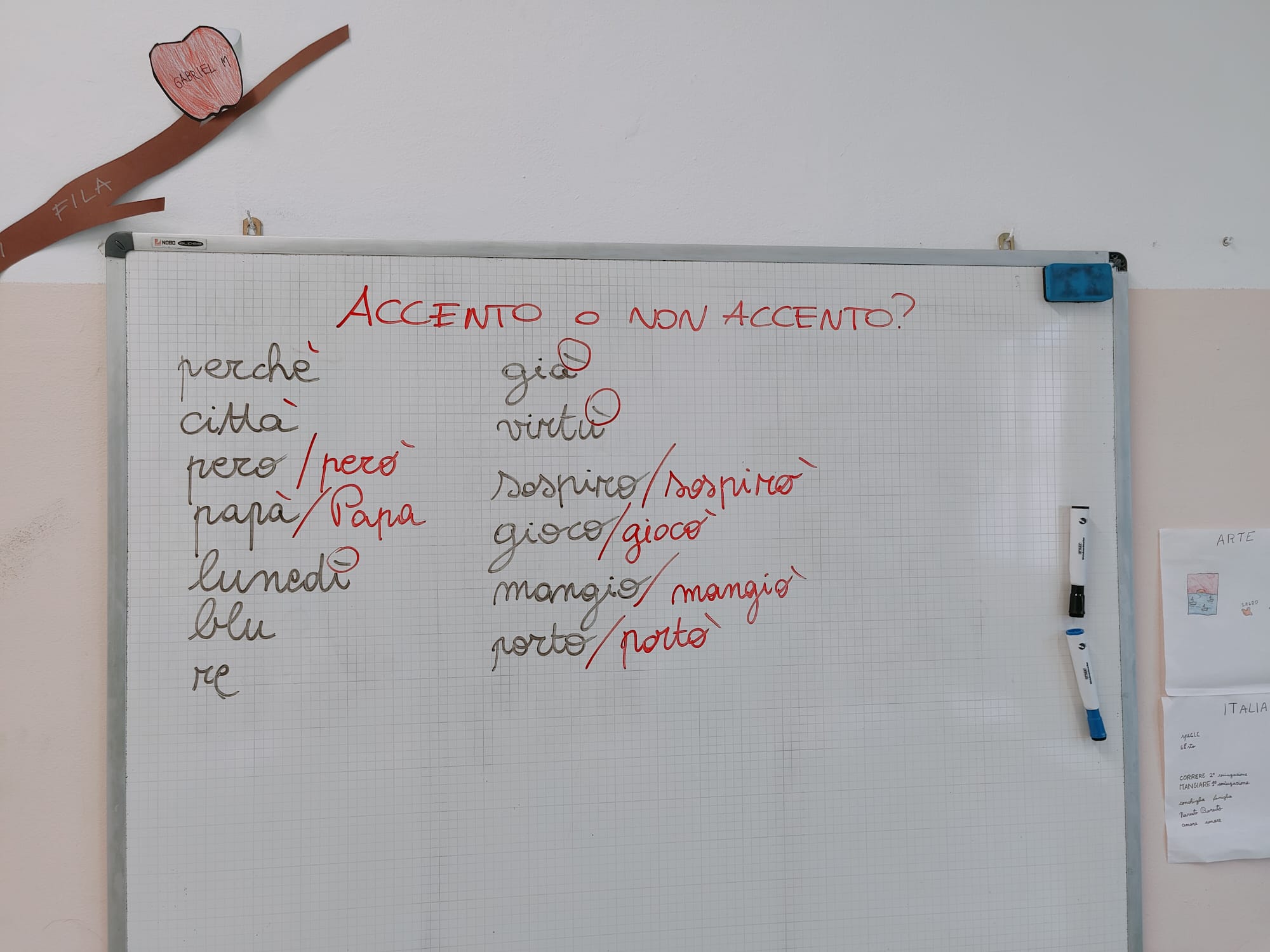 Oggi hanno ragionato sugli accenti. La prima ora e mezza hanno fatto un gioco per consolidare nomi, verbi e aggettivi.